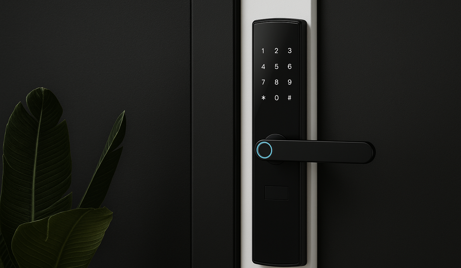 Features: Fingerprint, PIN, app, NFC tag, mechanical key override